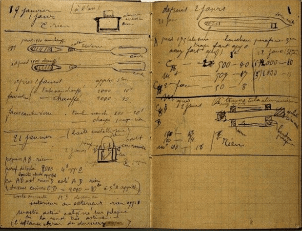 A highly radioactive journal, containing Marie’s research. (Valjak 2018)